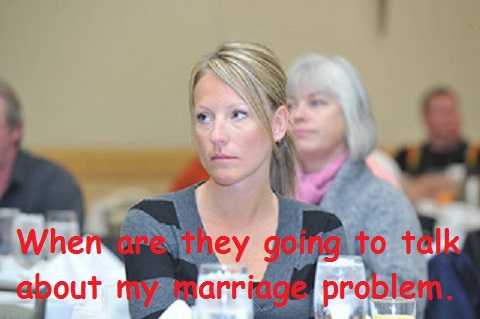 You want help with your marriage but only sit, listen and read about general problems that have very little to do with your marriage.